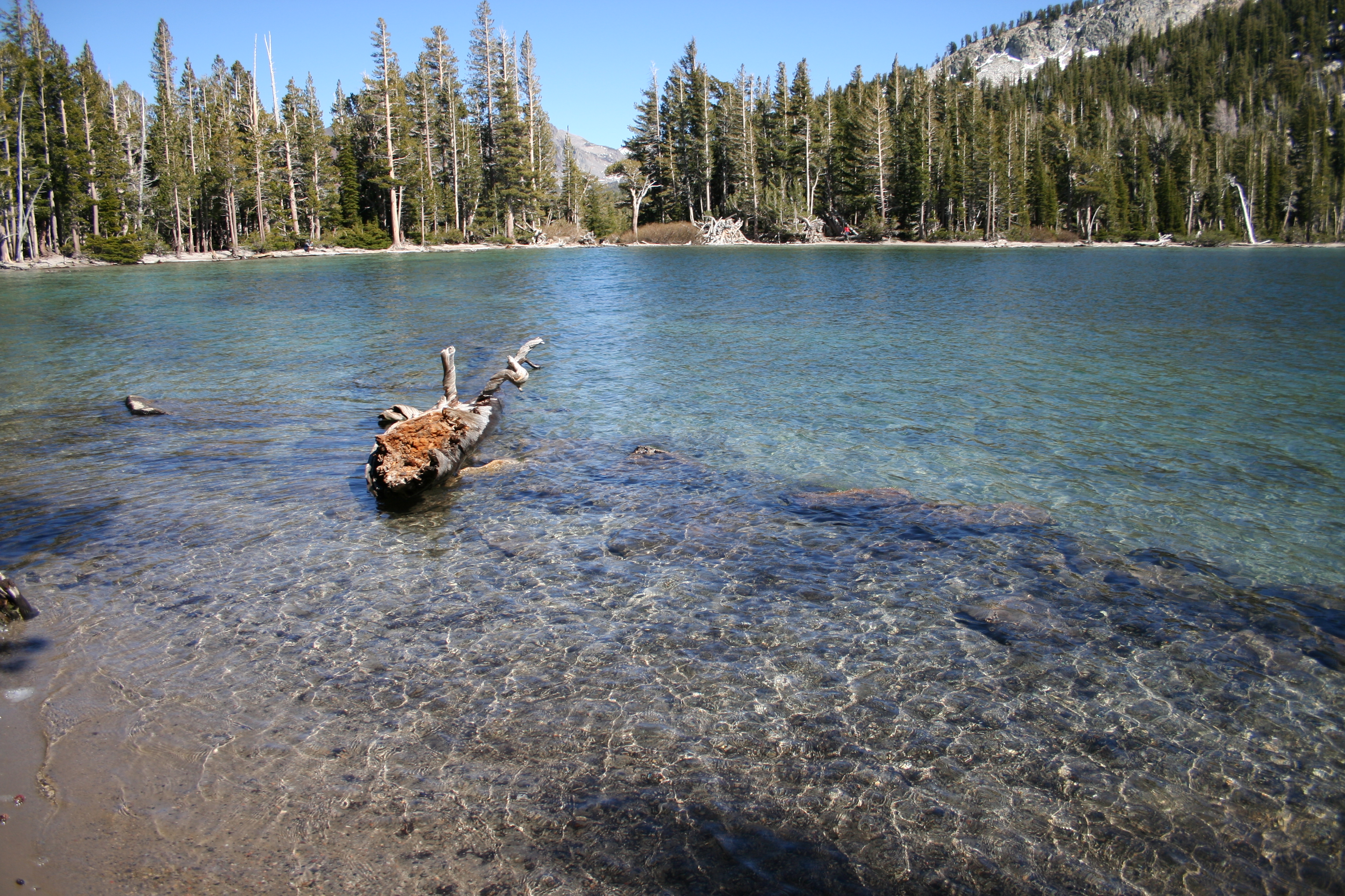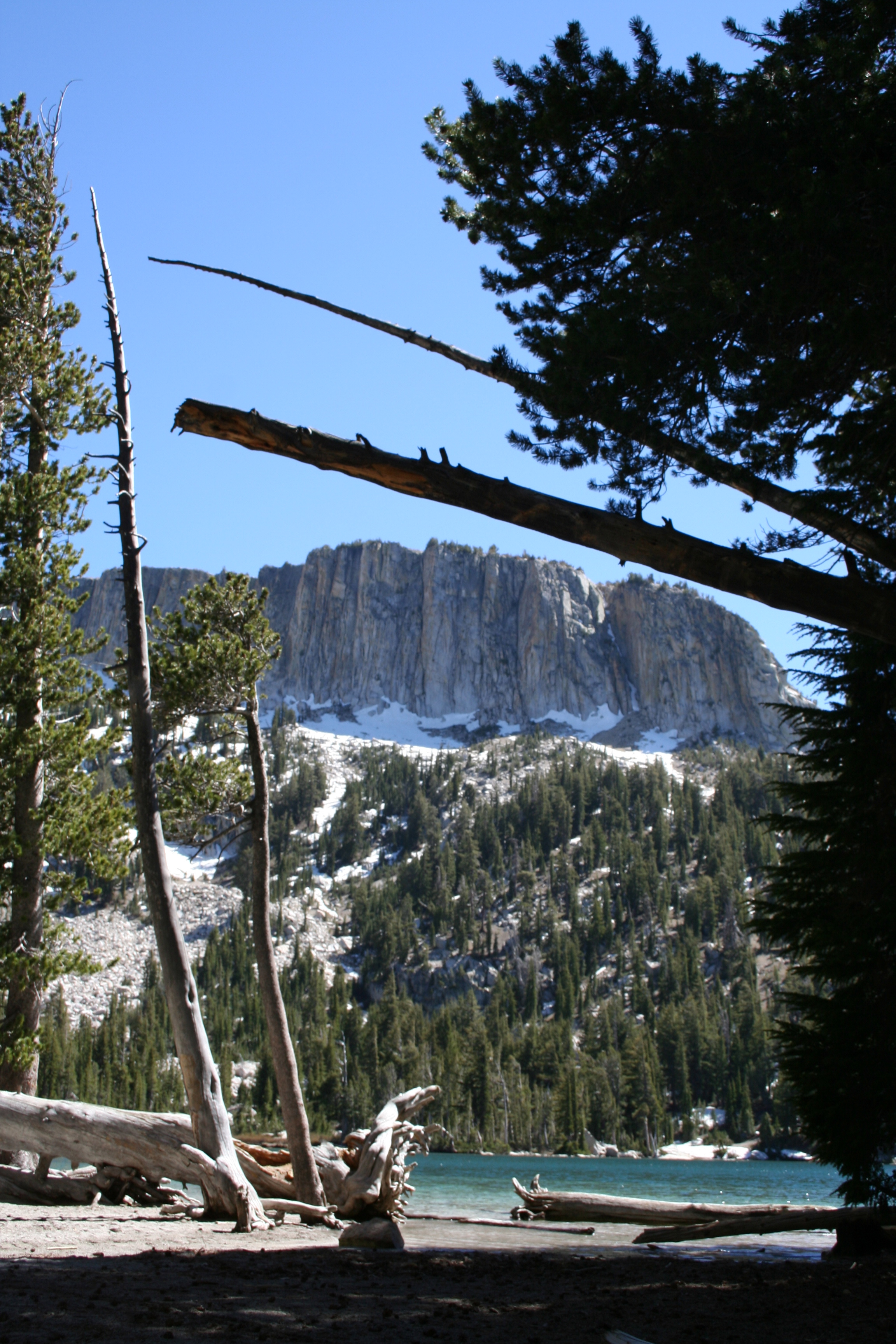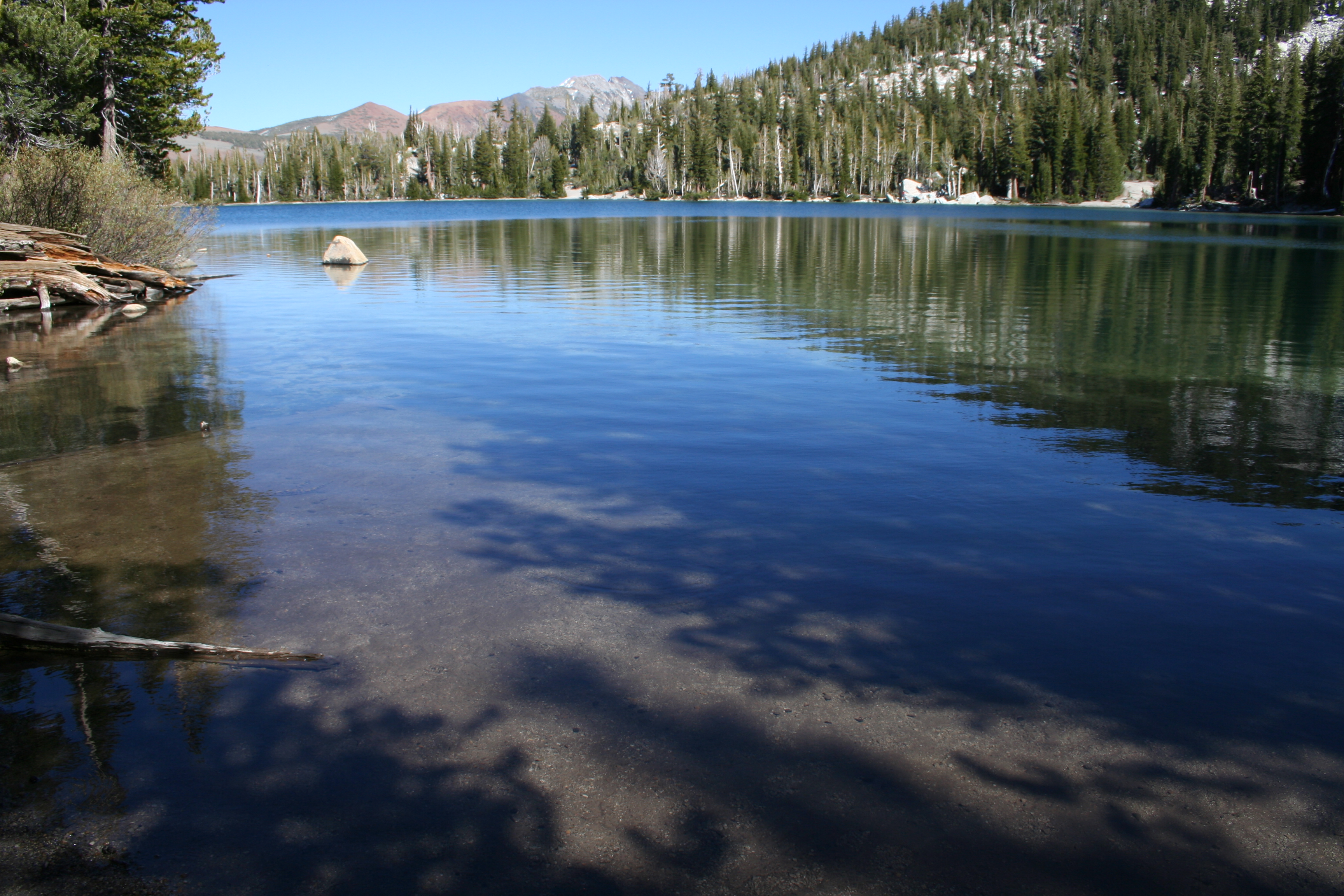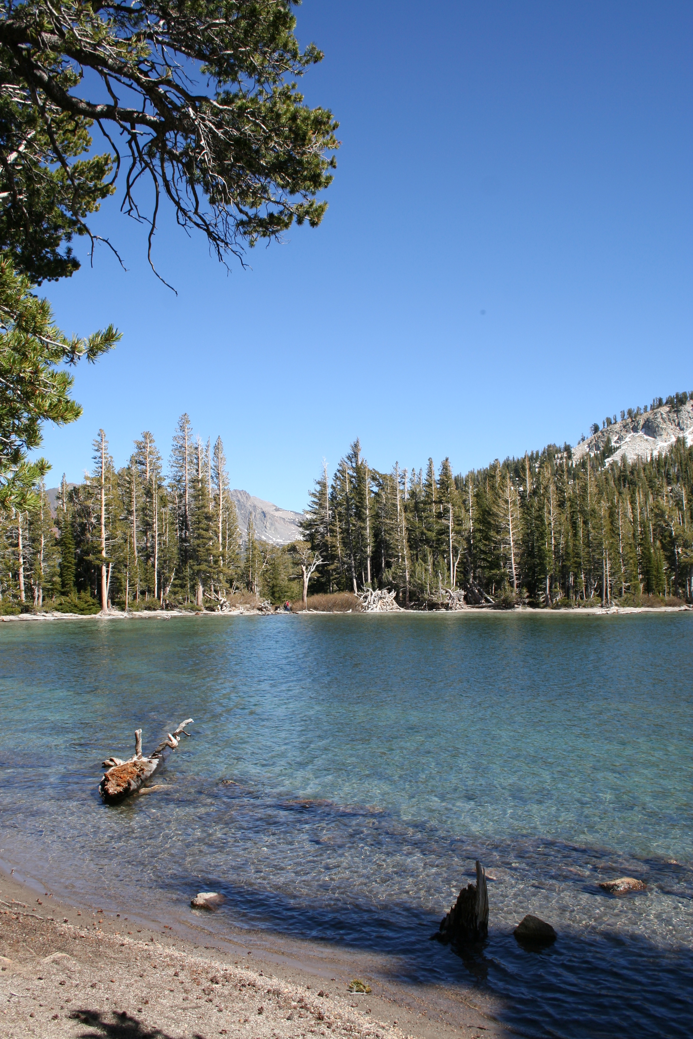 The Mammoth high country in the Eastern Sierras (just to the east of Yosemite) offers great camping and hiking away from the national park crowds. This easy hike southwest of the winter ski town of Mammoth Lakes gives you a taste of what the high Sierras have to offer – pristine lakes, amazing oft-snowcapped mountain peaks and jagged rock outcroppings. The hike starts where Route 203/Lake Mary Road ends at Horseshoe Lake in the Inyo National Forest. You’ll ascend through a ghostly forest of white, barren trees killed by carbon dioxide emanating from the earth beneath into the subalpine forest to your destination of McLeod Lake. After spending some time at the lake with the local dog owners and their very happy canines, you’ll climb a little higher before descending back to the parking lot.