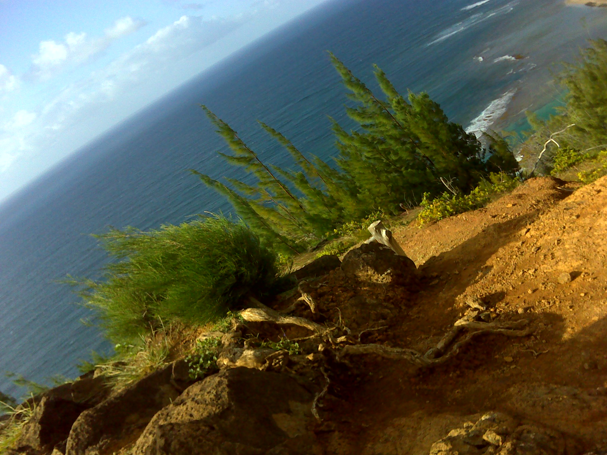 3. You can’t get lost on the trail as it hugs the coast without turnoffs for the first 2 miles. You will first climb uphill on rough stones. Be sure to stop periodically and look back at Ke’e Beach. After about a mile or so you will start the decent toward Hanakapi’ai Beach with majestic views of the coast in front of you. If it’s been raining or moist be careful as the dirt here can be exceptionally slick when wet.