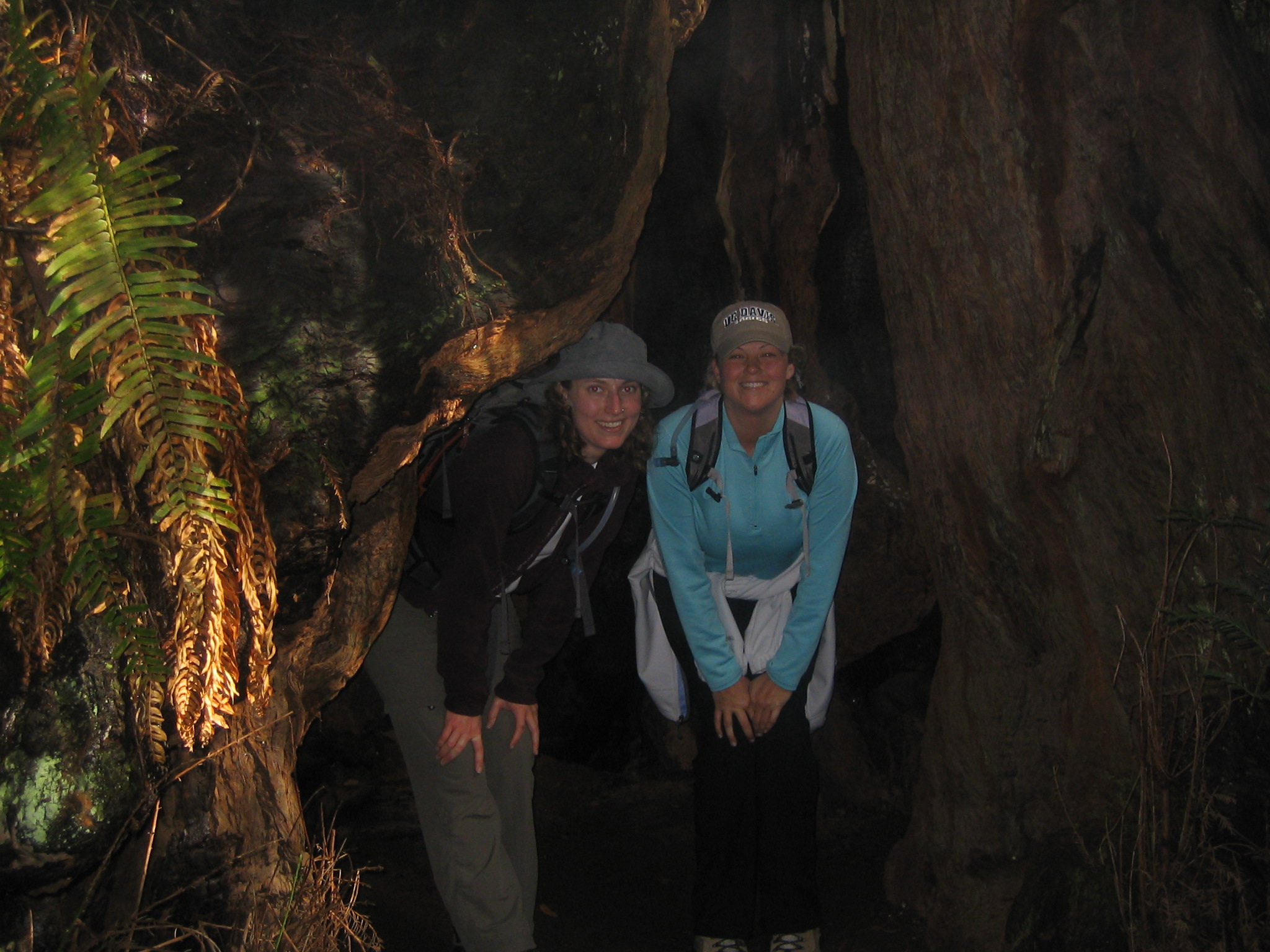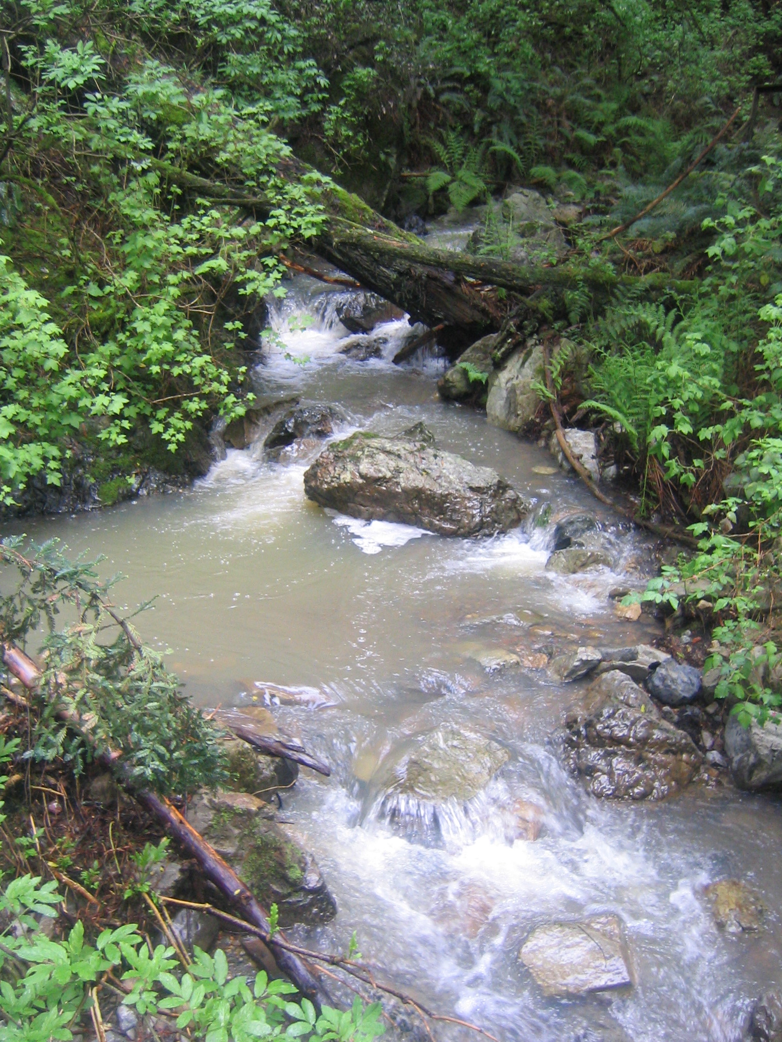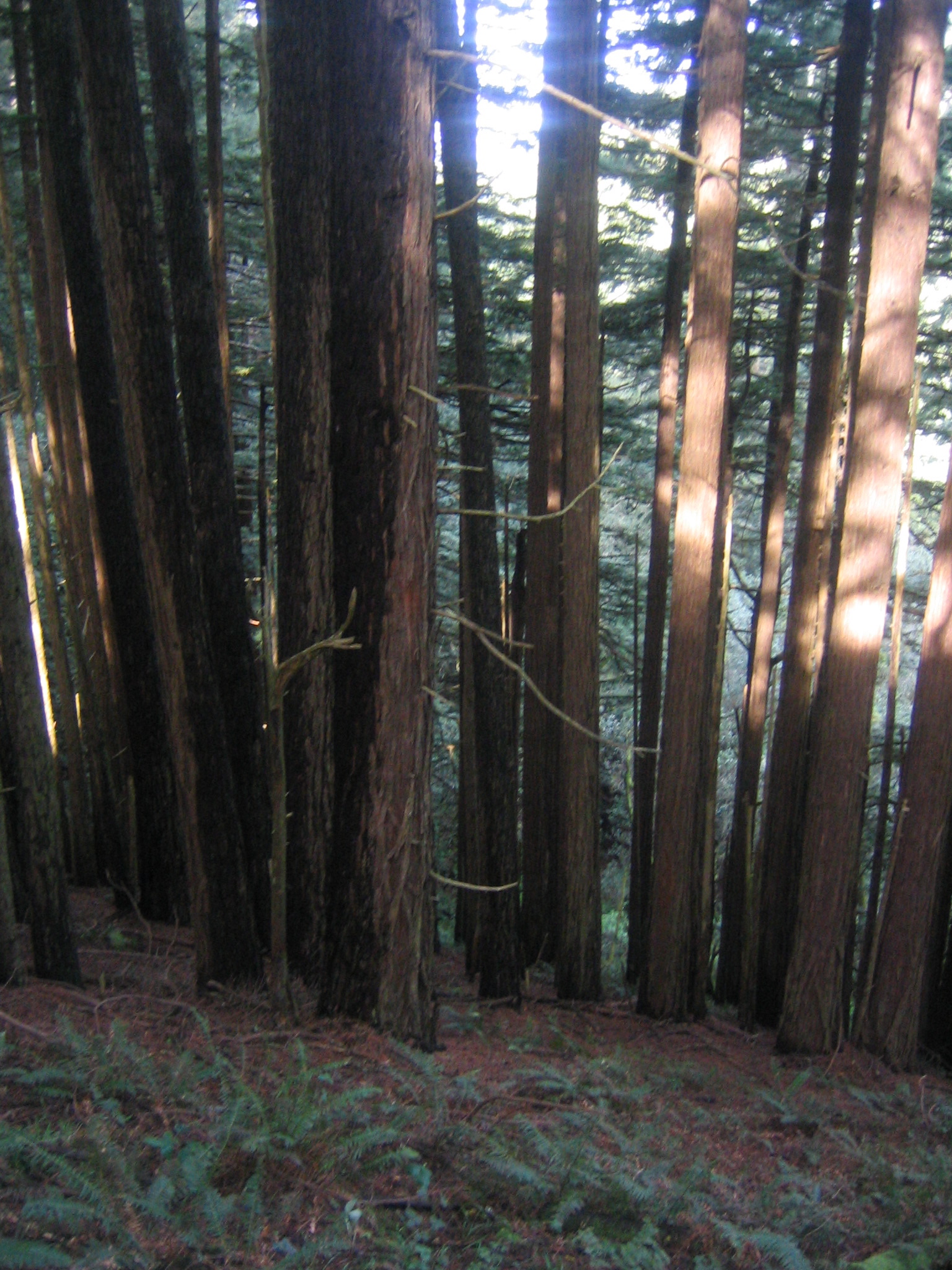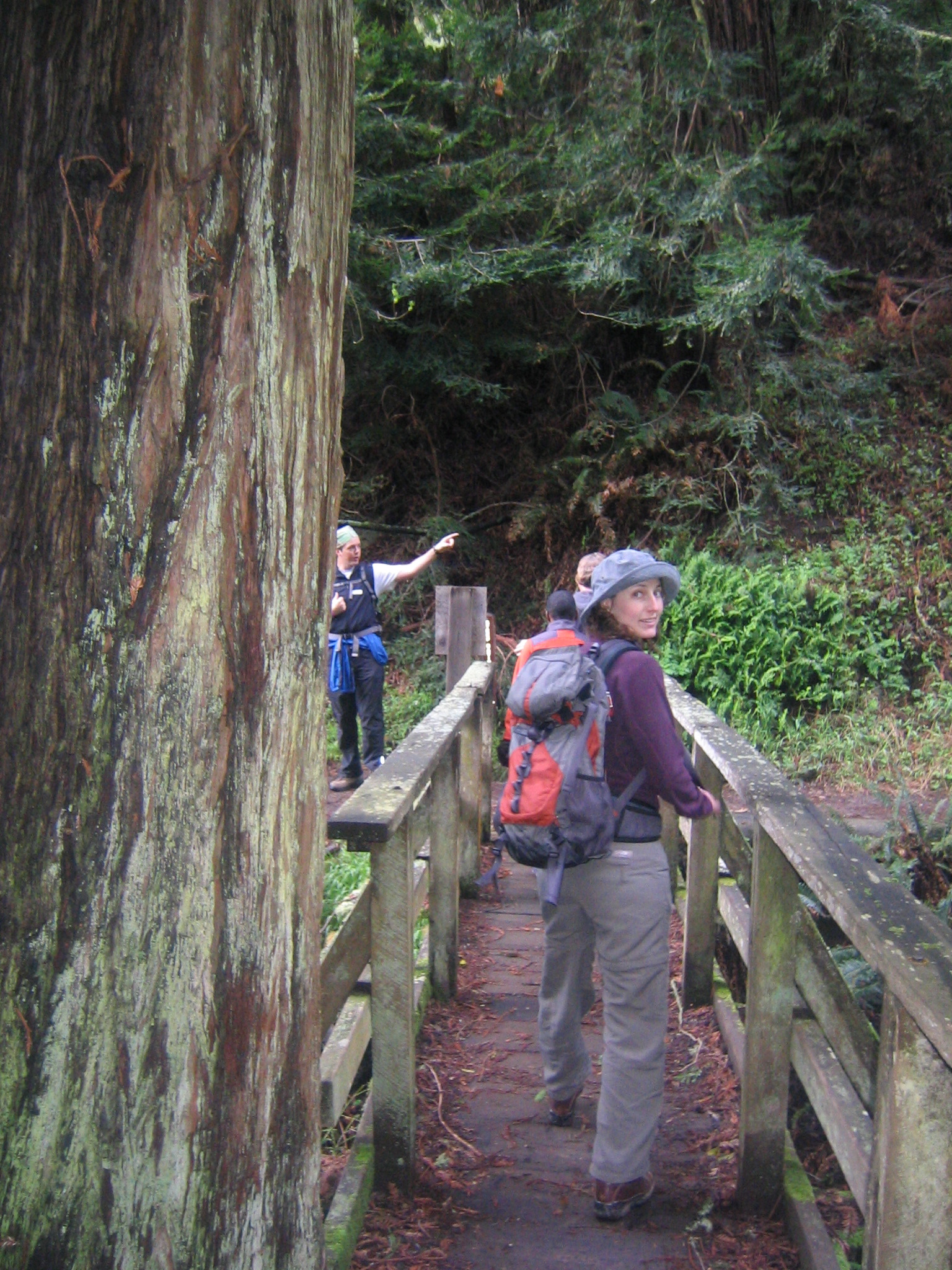 The climb out of the steep ravine was gorgeous. Winter here in California means wet weather, so the waterfalls and creeks were rushing with water. The tree canopy was green and throughout the ravine was an amazing covering of vibrant blue-green and emerald green moss covering one side of every slope, tree trunk and branch. The early morning mist gave the ravine a very ephemeral and magic feeling. And the clean moist smell of the redwoods was refreshing (not to mention the crisp air – it was 40 degrees at the start of the hike, about 55 degrees when we finished.)
