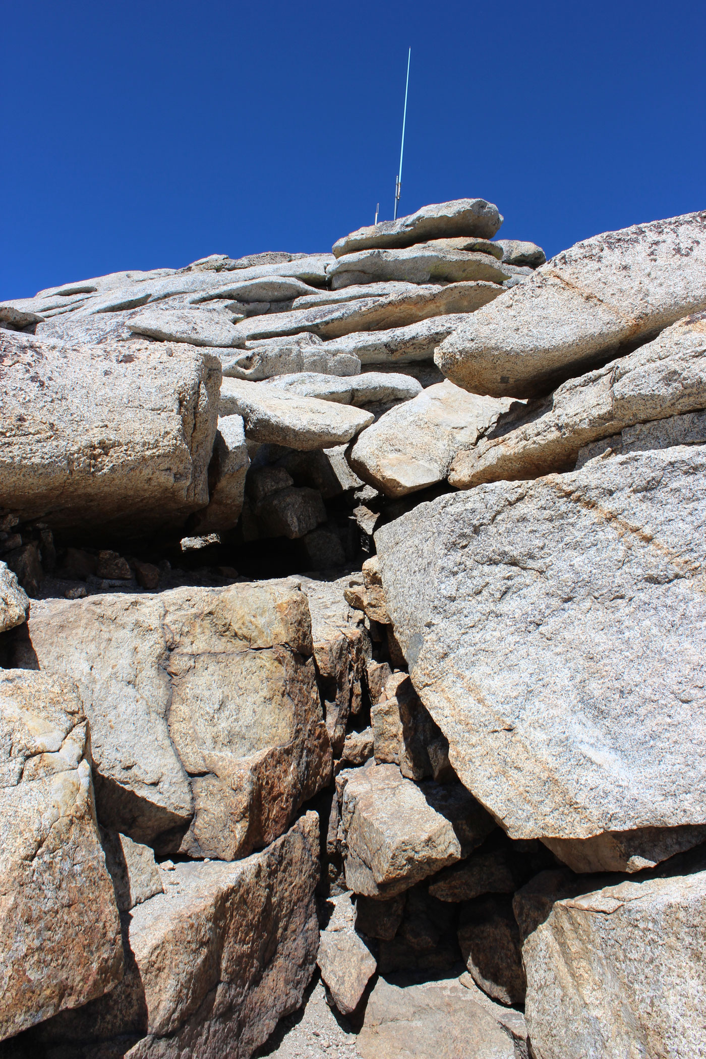 4. As you are approaching the rock scramble to the peak with it’s large radio tower on top there are two distinct routes. One veers to the left and up some loose scree appearing and disappearing from view as you go (there are parts where there’s no obvious route, you should just pick what you are comfortable with). The alternate route if you follow the rightmost path heads up a steeper, boulder route with less scree near a cliff edge. If you are comfortable hoisting yourself up some big boulders and not too fearful of drop-offs a few feet away, this rightmost route may be preferred, but otherwise, the leftmost route is the way to go.
